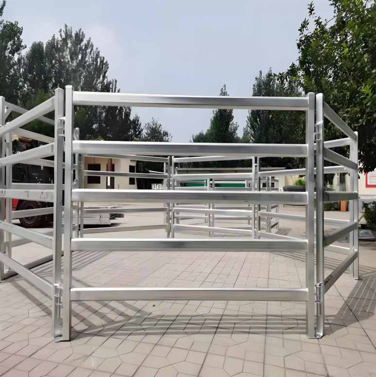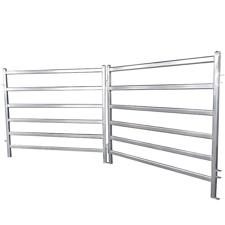 รั้ววัว หรือที่เรียกว่ารั้วปศุสัตว์หรือรั้วฟาร์ม ทำจากท่อสี่เหลี่ยม ท่อรูปไข่ หรือท่อกลม และทำหน้าที่เป็นโซลูชันการทำรั้วแบบพกพาหรือถาวร มีให้เลือกหลายขนาด ความยาว และการกำหนดค่าราง แผงเหล่านี้มีความสวยงาม ปลอดภัย และติดตั้งง่าย