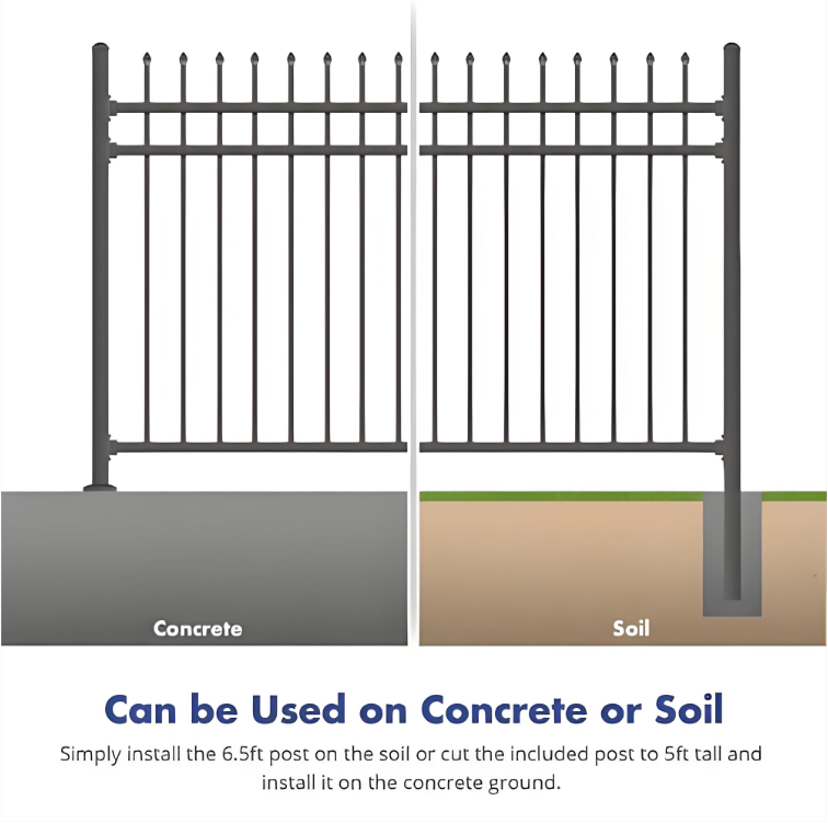 รั้วเหล็กท่อสำหรับสวน 6 ฟุต ทนทาน ป้องกันสนิม รั้วสวนเพื่อความปลอดภัย